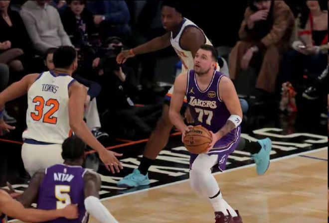 尼克斯3人20+擒湖人6连胜 东契奇30+15+8勒布朗22+5+6