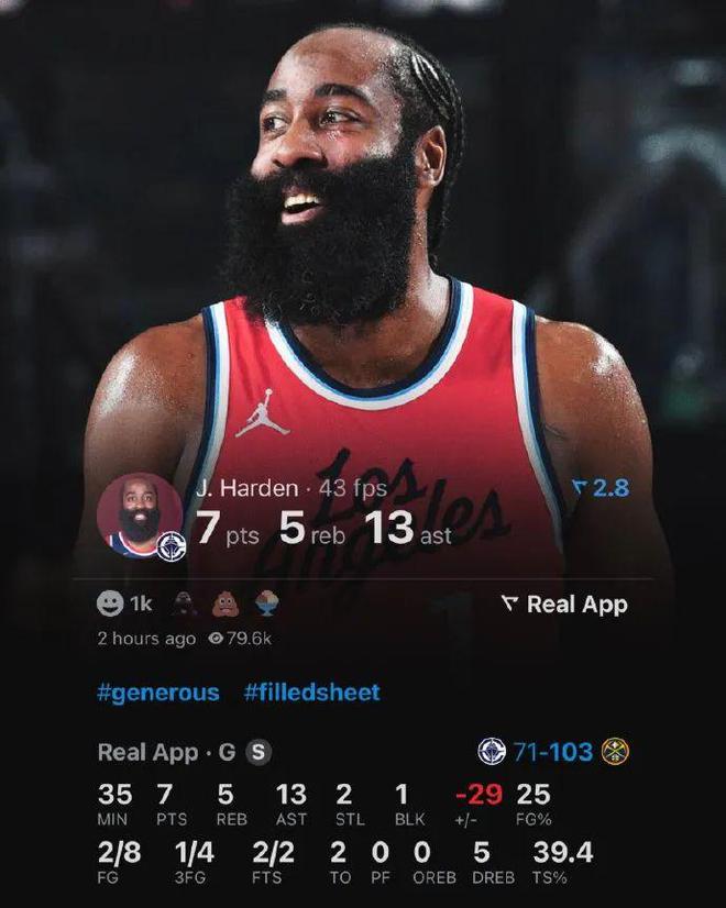 除此之外同时最主要的还是哈登,如果就按他常规赛场均23+6+9的表现,快船都为其备好了顶薪续约合同,但今年季后赛的发挥实在不尽人意,场均18.7分5.4板9.1助,包括最重要的G7投篮8中2才拿下7分,这不是一名持球大核该打出来的数据。