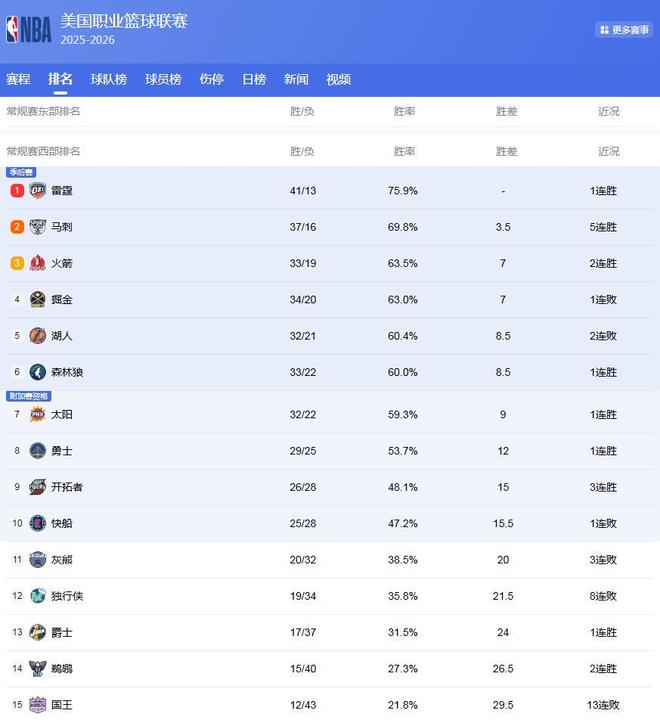 NBA25-26赛季,已经进入了下半程比赛,每支球队还剩下30场比赛左右,因此各队也进入了争夺排名的关键期,东西部竞争变得更加激烈起来,爆冷、逆转的戏码也是不断上演,排名随时在发生变化,也导致NBA排名大变脸:火箭升西部第3,湖人坐5望4;骑士4连胜直冲东部第2!
