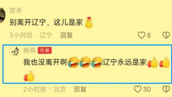 但是杨鸣在和球迷互动时承诺,虽然暂时离开了辽篮,但是并不会离开辽宁,因为辽宁永远都是生他和养他的家。