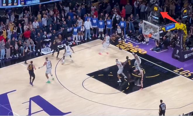 东契奇有一个超级空位没有出手,他却将球传给了底角有人盯防的詹姆斯,詹姆斯接到这个球时只剩下2.5秒,詹姆斯转身三分出手不中。