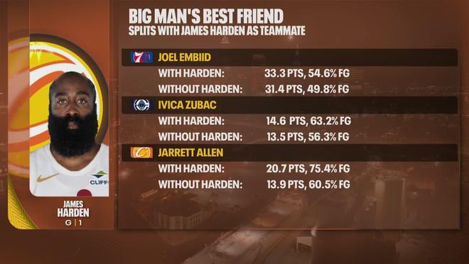 中锋的“奶妈”,美媒晒三大中锋数据,与哈登做队友后全方面提升
